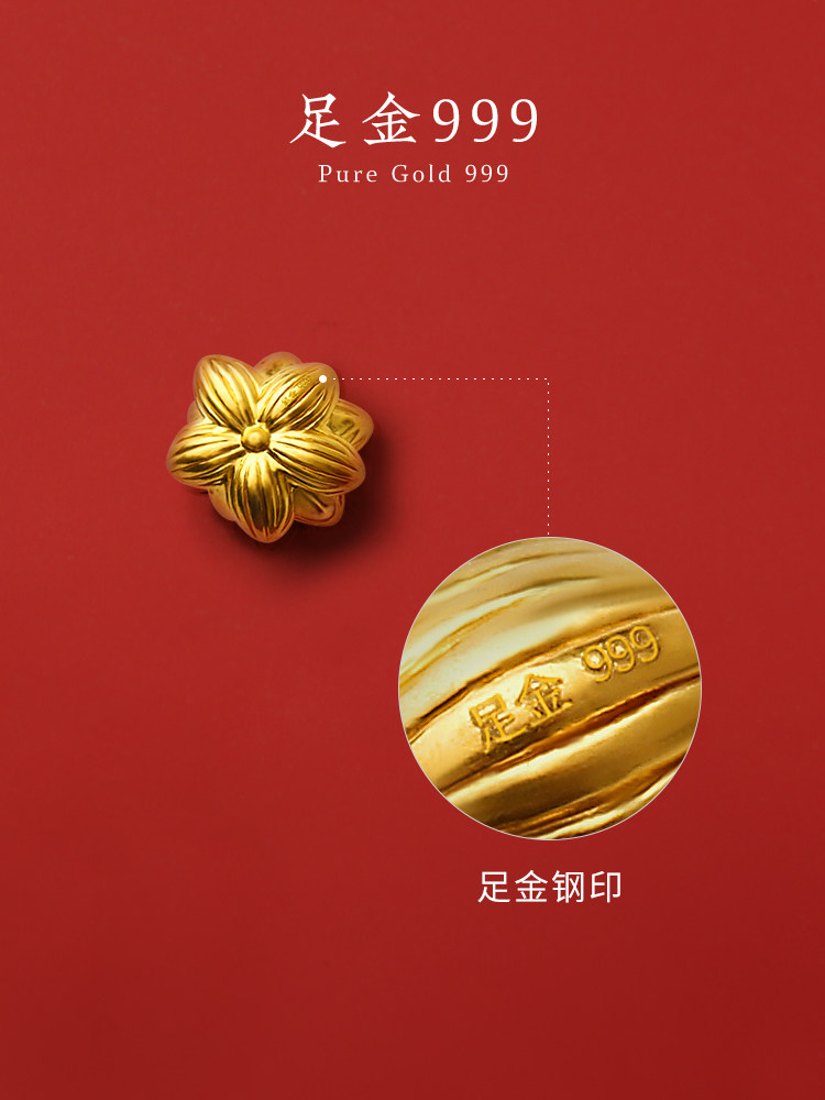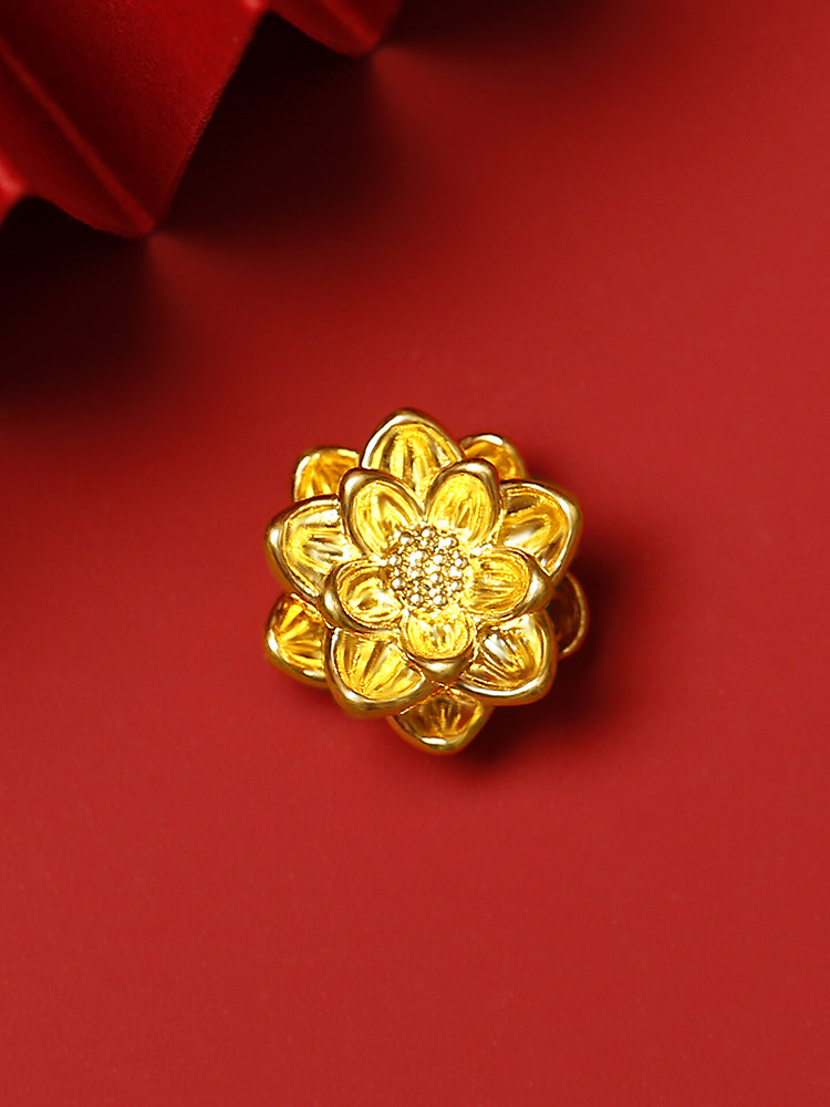 Gutai 999 foot gold lotus gold transfer beads 3d hard gold pendant beads pure gold lotus bracelet diy small accessories