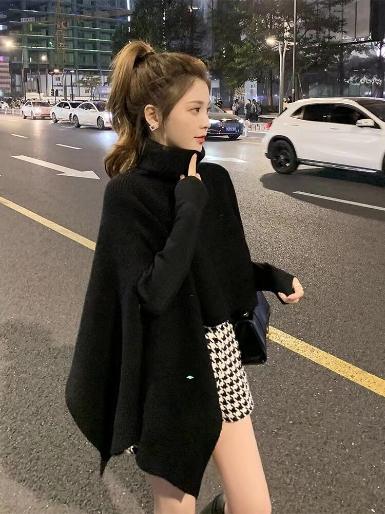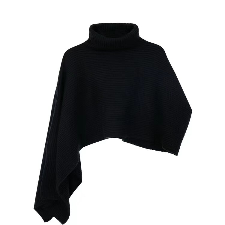 Autumn and winter pullover warm shawl knitted women's slit cloak new irregular cape high collar net infrared scarf