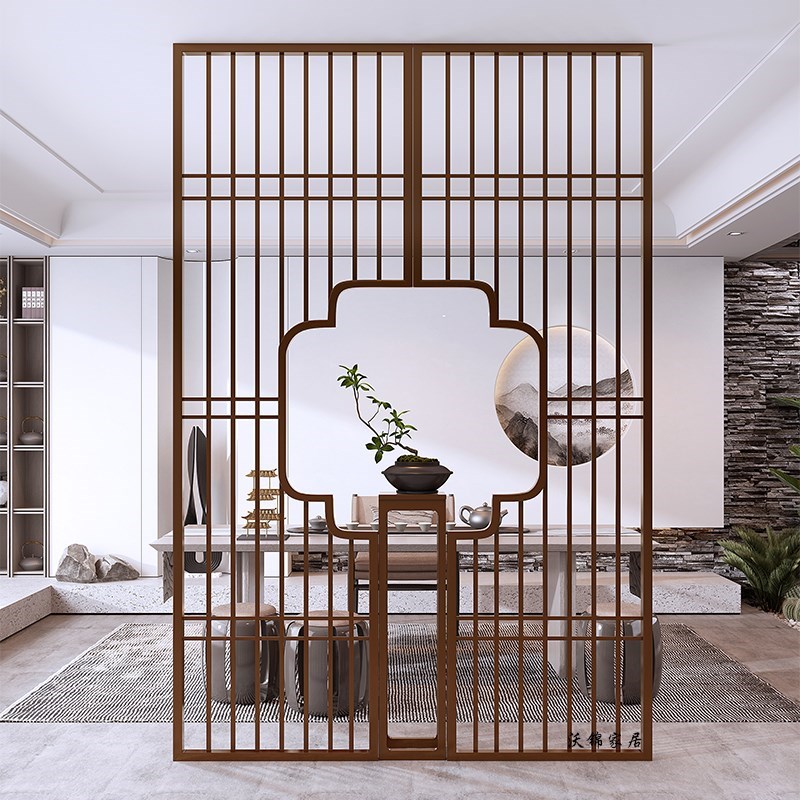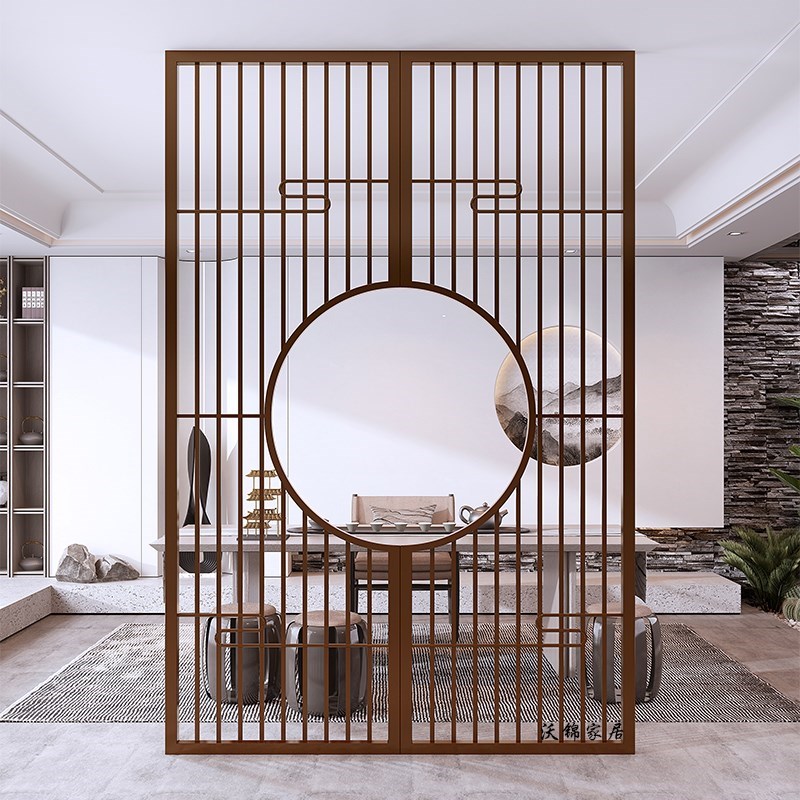 New Chinese style wrought iron partition screen living room restaurant entrance door porch stainless steel office restaurant decoration light luxury