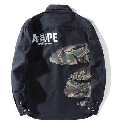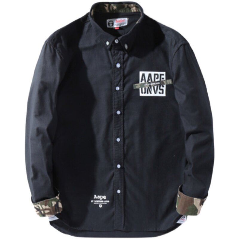 Spring new trendy brand simple shirt letter printing bottoming shirt top casual long-sleeved men's shirt