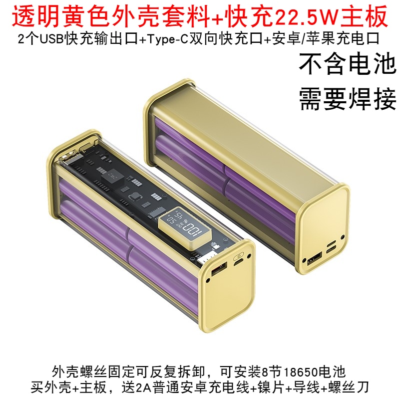 QC4 0 super fast charging mobile power DIY kit charge charging treasure transparent housing 18650 battery case 22 5W-Taobao