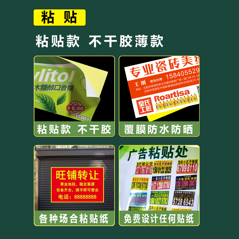 Non-coated (writable) coated (waterproof) PVC business card stickup (adhesive)