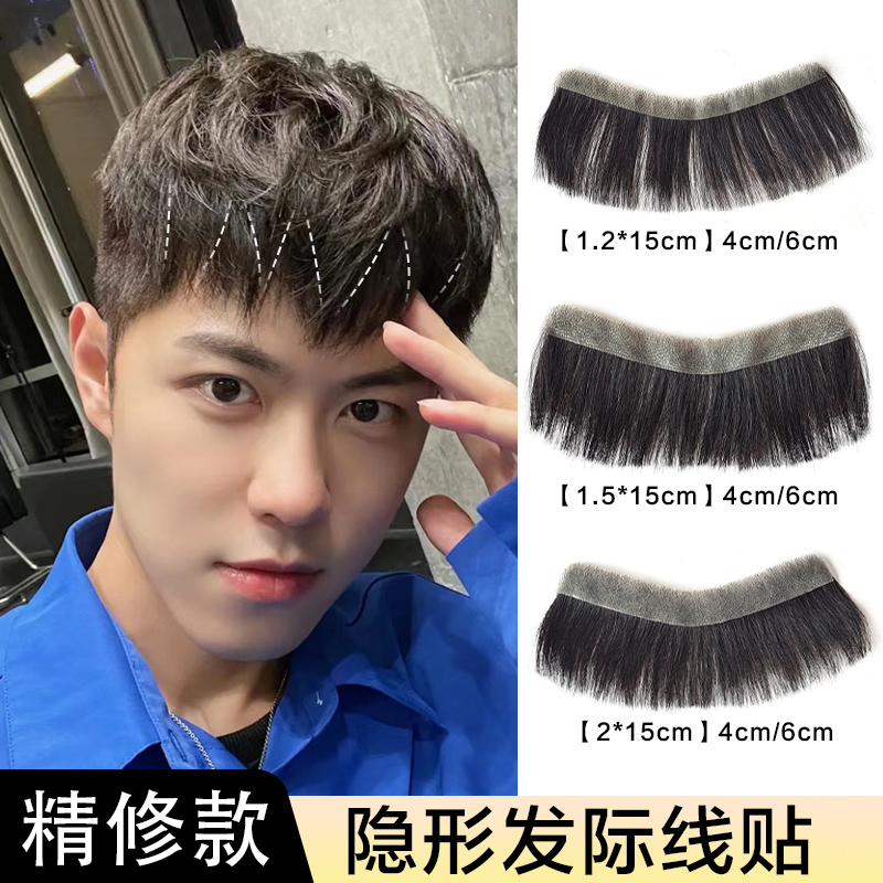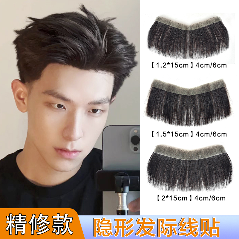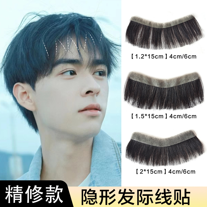 Hairline wig stickup men's natural light and thin no marks Real Hair Fake haircut Men's forehead Liu Hai-M Type of Tonic Hair