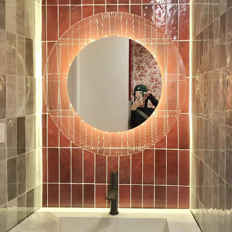 Half-time mirror decoration European retro modern minimalist wall-mounted round luminous wall-mounted mirror bathroom mirror dressing mirror round mirror