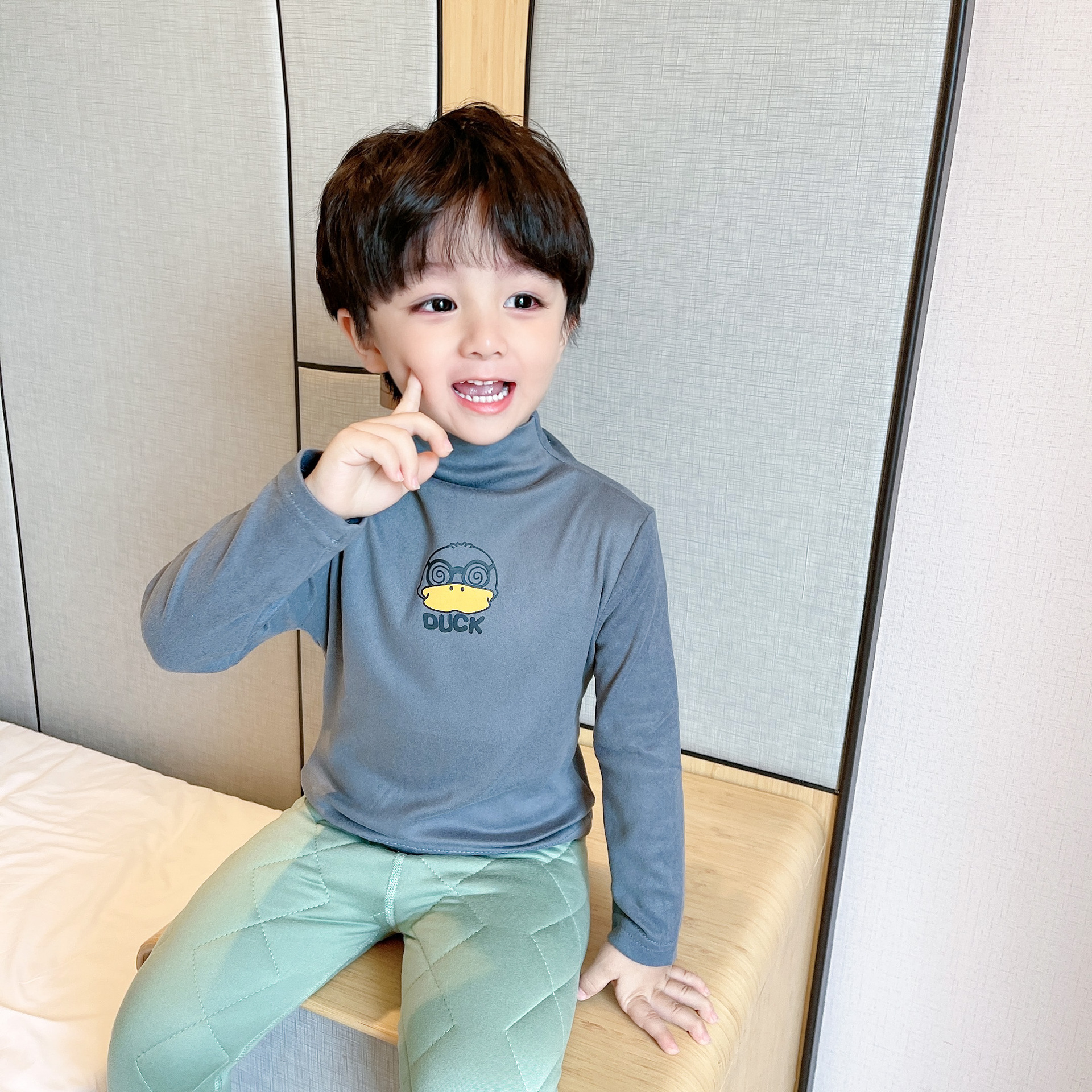 Children's bottoming shirts boys and girls autumn and winter warm pullover tops baby half turtleneck German velvet inner long-sleeved T-shirt