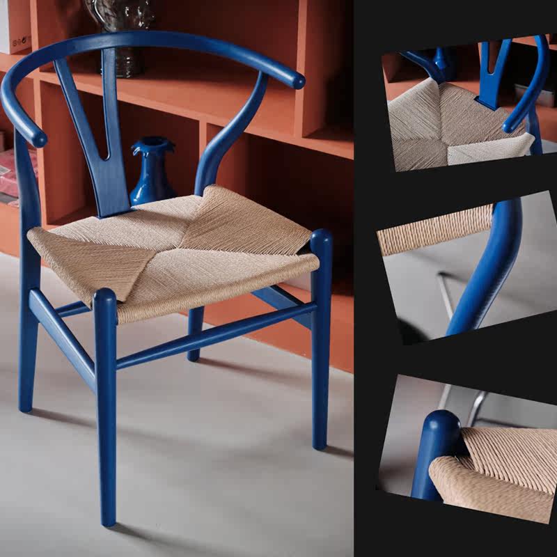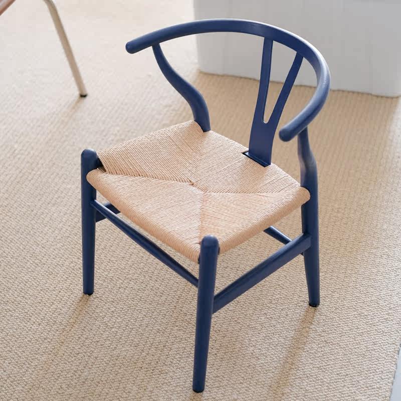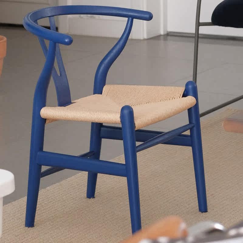Nordic minimalist home solid wood Y chair retro woven dining chair home restaurant Klein blue designer Chinese chair