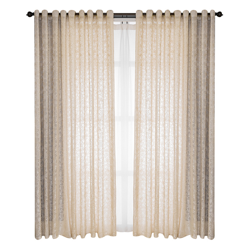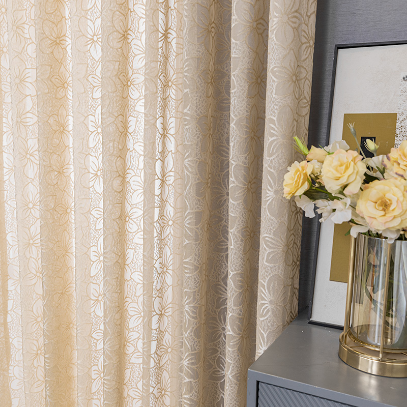 Simple modern milk tea color gauze curtain hollowed out translucent semi-transparent window screen living room balcony bedroom bay window relief light luxury