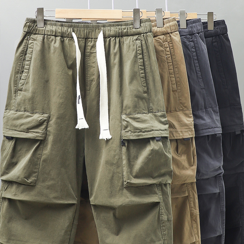 American heavyweight retro overalls for men in autumn high street military green assault pants loose wide leg casual pants for men