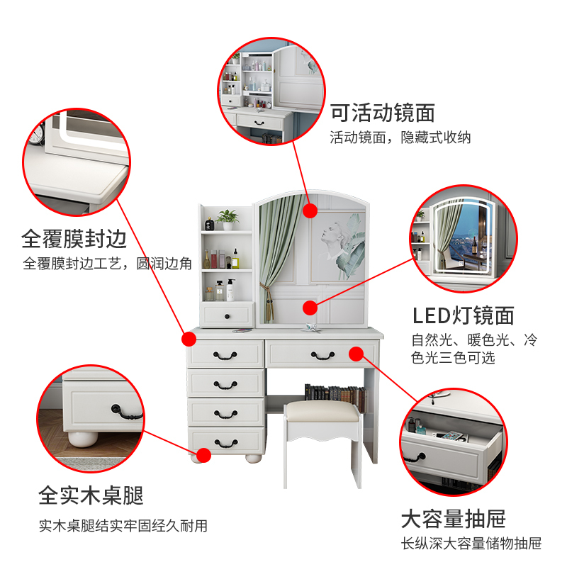 Simple dresser bedroom modern minimalist small family type rental house push-and-pull mirror with light make-up table containing cabinet integrated-Taobao