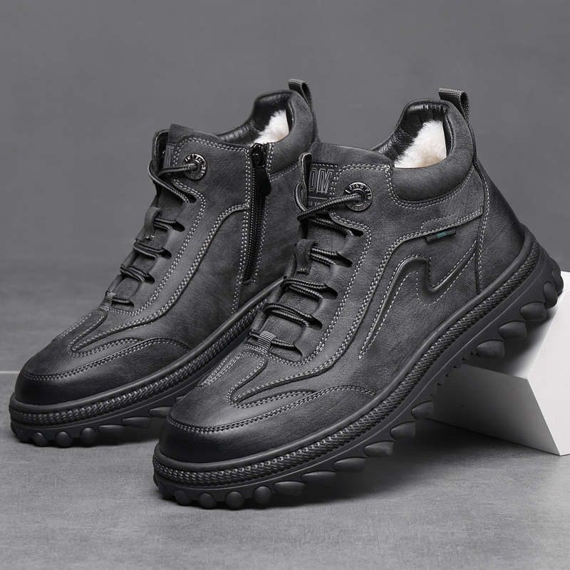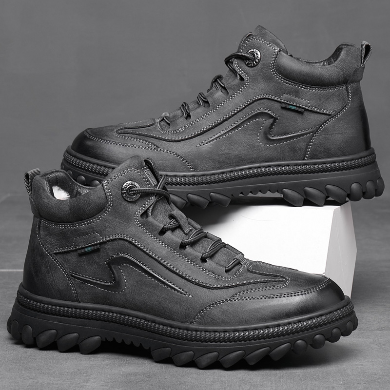 Men cotton shoes genuine leather wool plus suede thickened high help casual cotton leather shoes non-slip warm men's shoes winter snow boots-Taobao