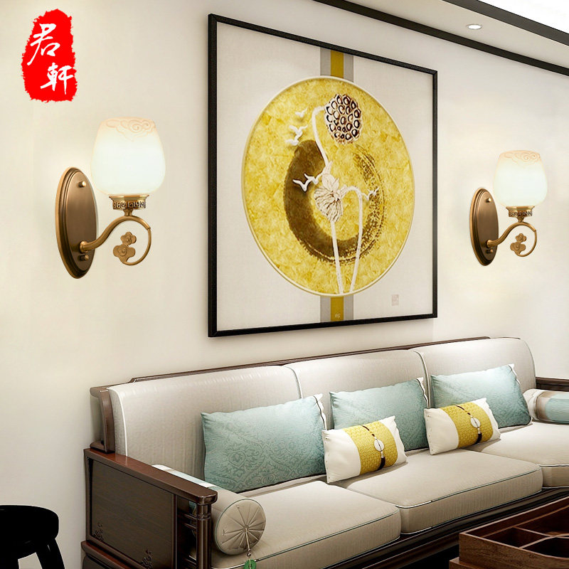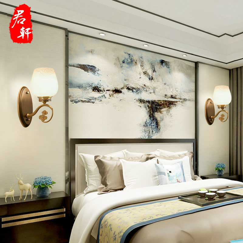 All copper modern new Chinese style wall lamp living room aisle stairs bedroom bedside lamp hotel model room background wall lamps