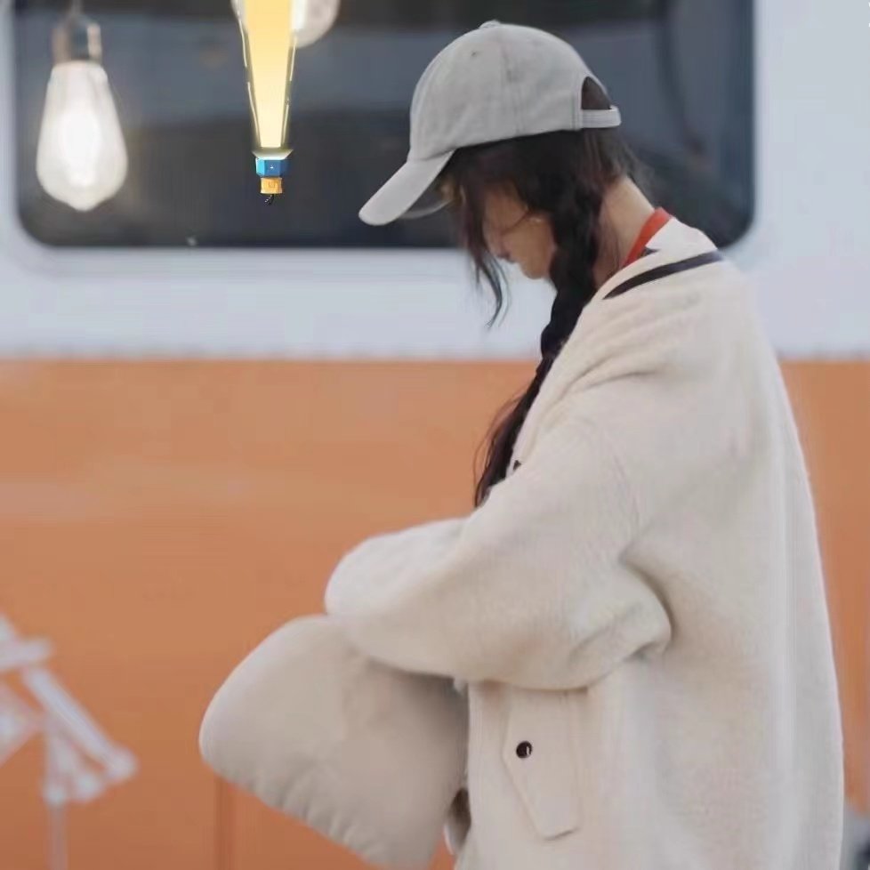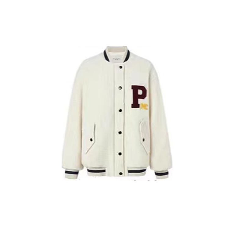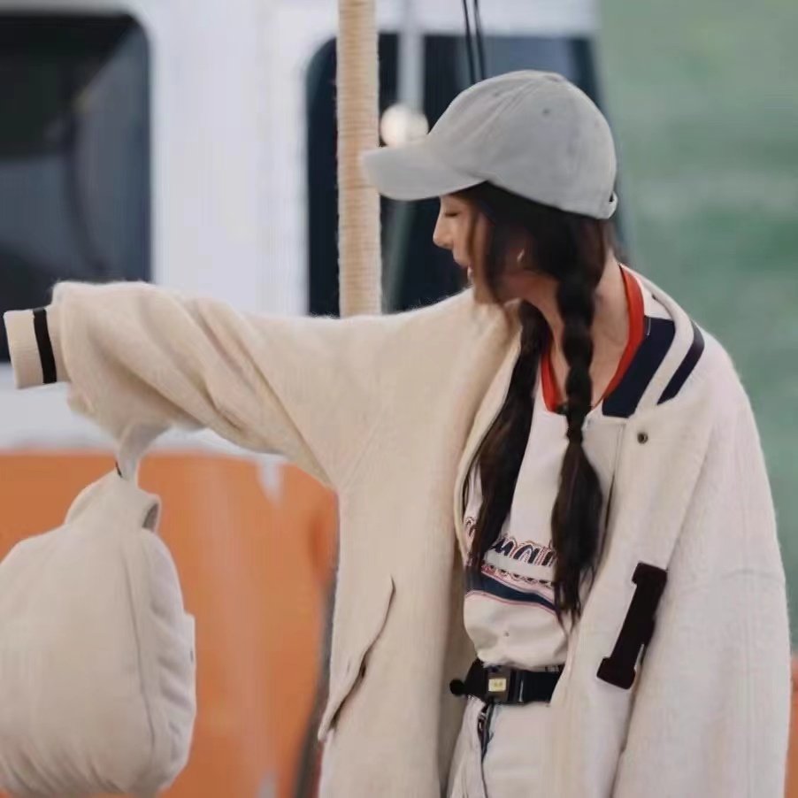 Hua'er and young Yang Mi same style beige lamb wool stand-up collar loose baseball jacket female 2022 autumn and winter new