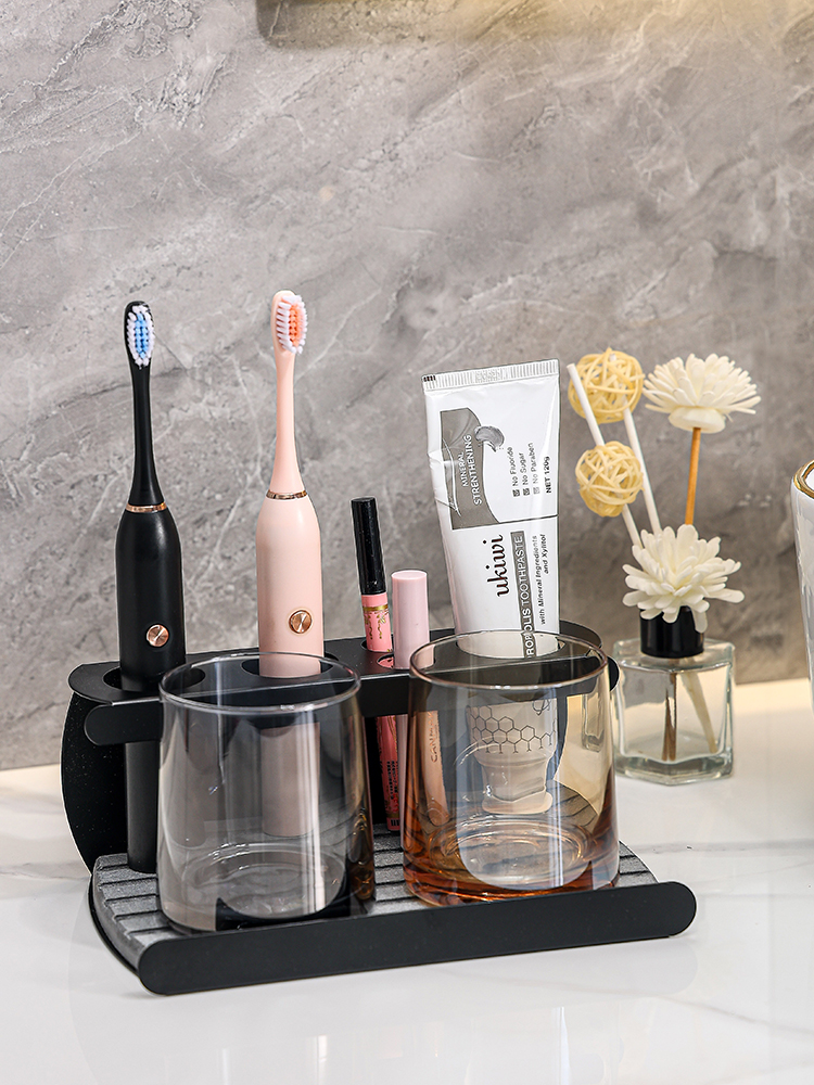 Electric toothbrush rack rack placement rack mouthwash cup tooth cup tooth cylinder storage rack household free punching wall hanging light luxury