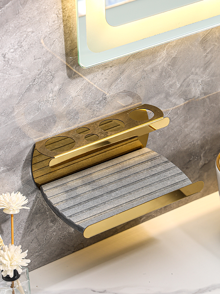304 stainless steel large toothbrush rack with gold-painted washing cup*2