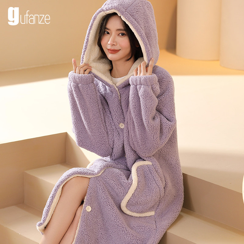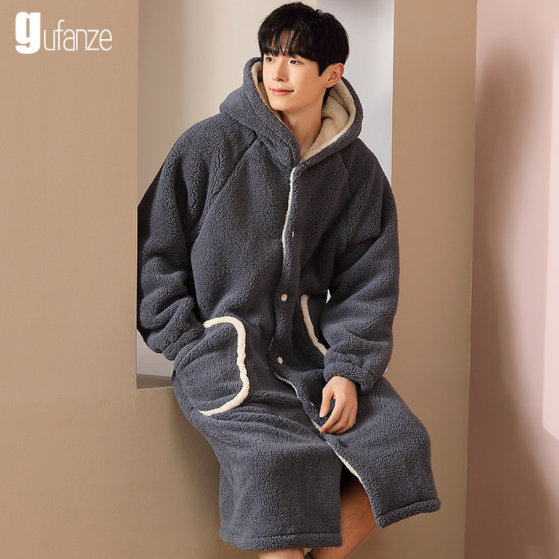 Couple sleeping robes women winter plus suede thickened coral suede winter style with cap pyjamas lengthened bathrobe men's home clothes-Taobao