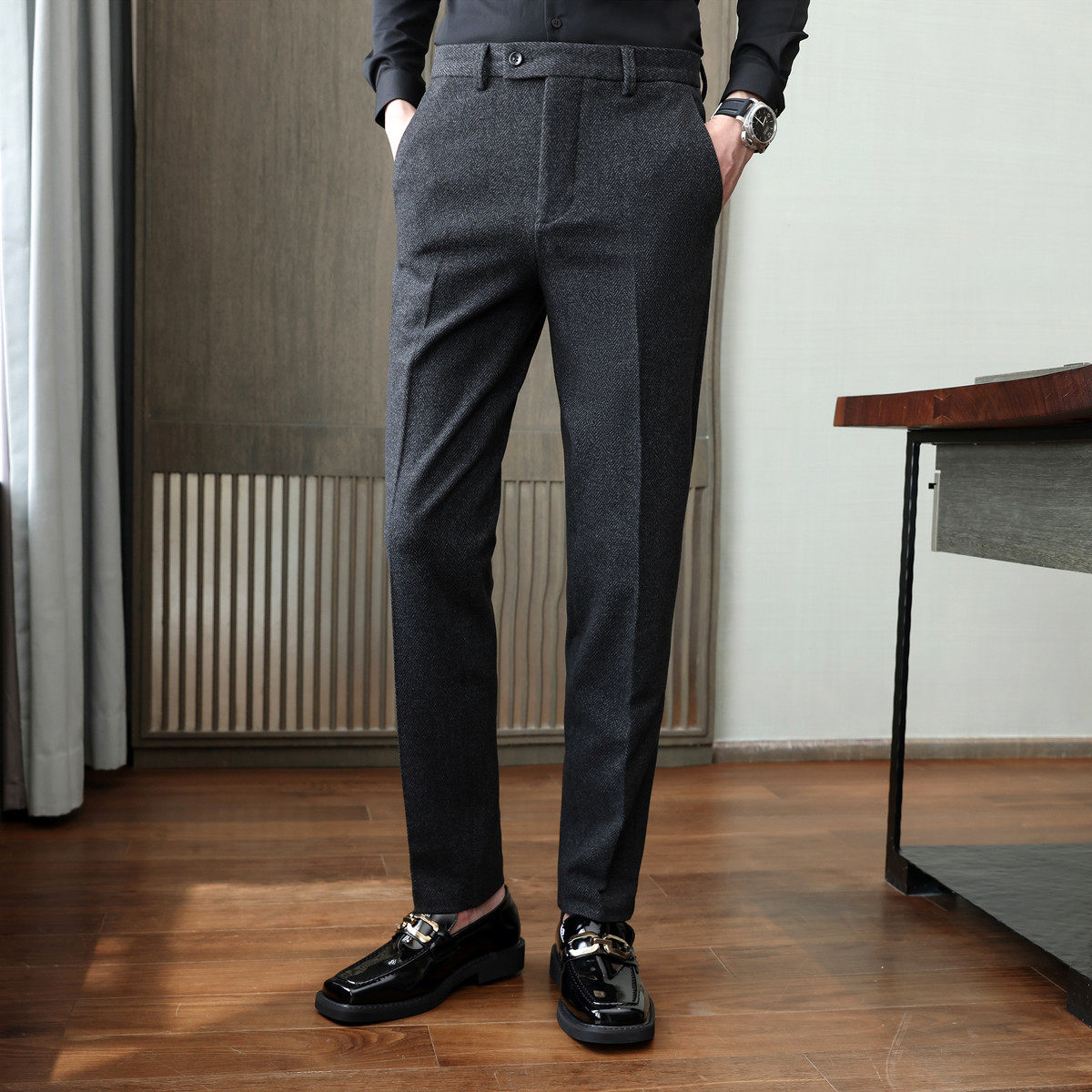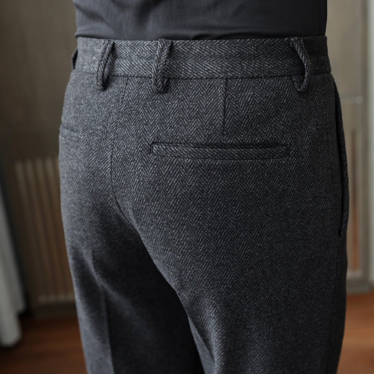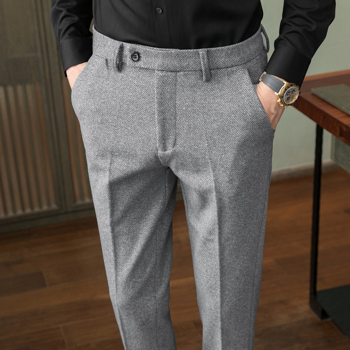 Gross material Western pants men's winter herringbone tattooed men's casual pants grabbing suede grinding wool Business Western clothing pants for men's pants-Taobao
