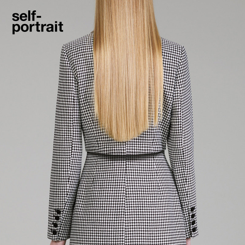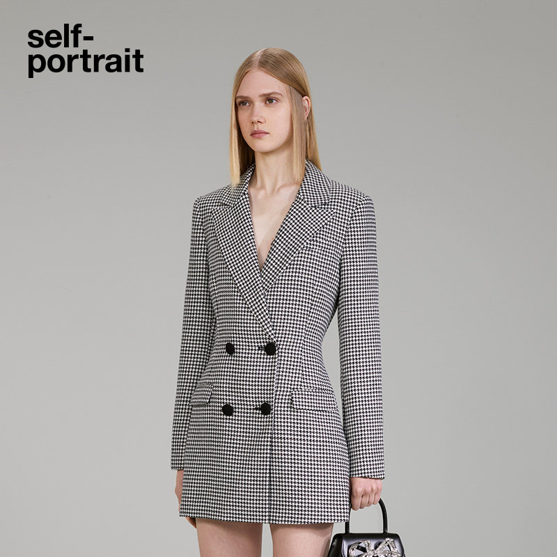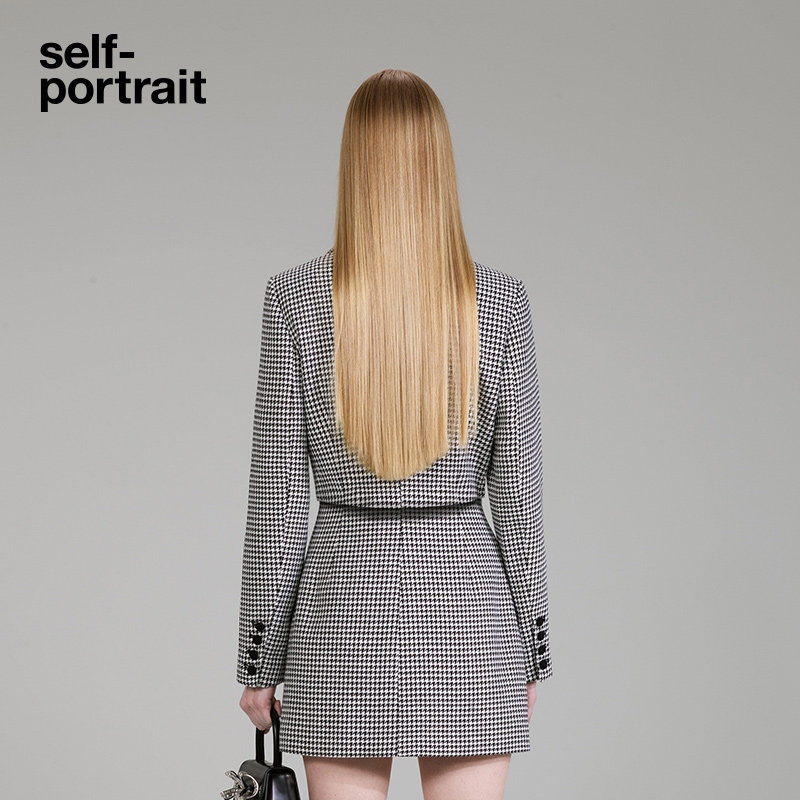 self-portrait 2022 autumn and winter gray plaid V-neck commuter slim dress skirt