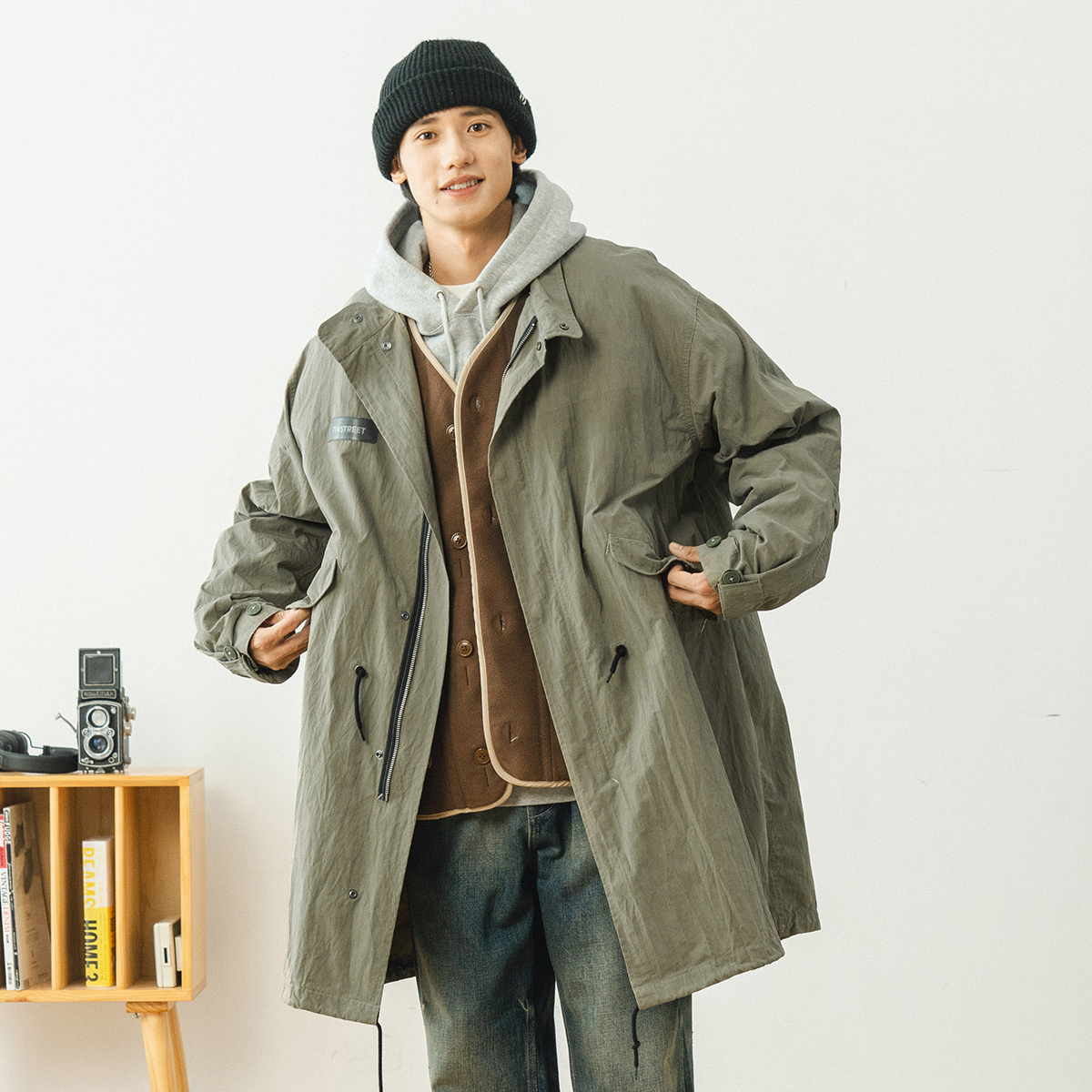 714street Japanese Department M51 Wind coat jacket male mid-length spring design sensation Advanced tooling jacket jacket man-Taobao