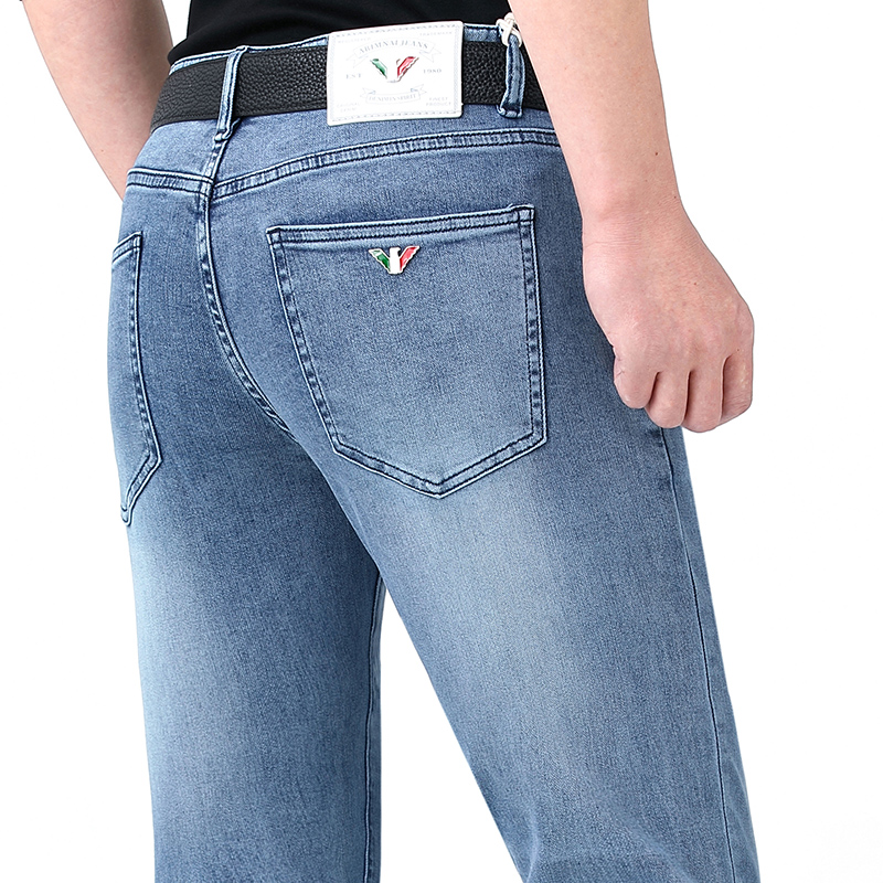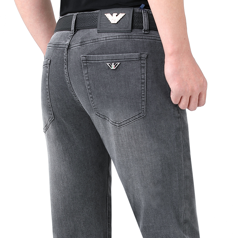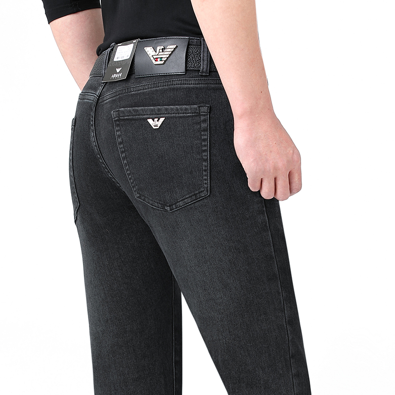 High-end brand jeans men's autumn and winter thick middle-aged straight business casual elastic mid-waist pure cotton slim-fit trousers - Taobao