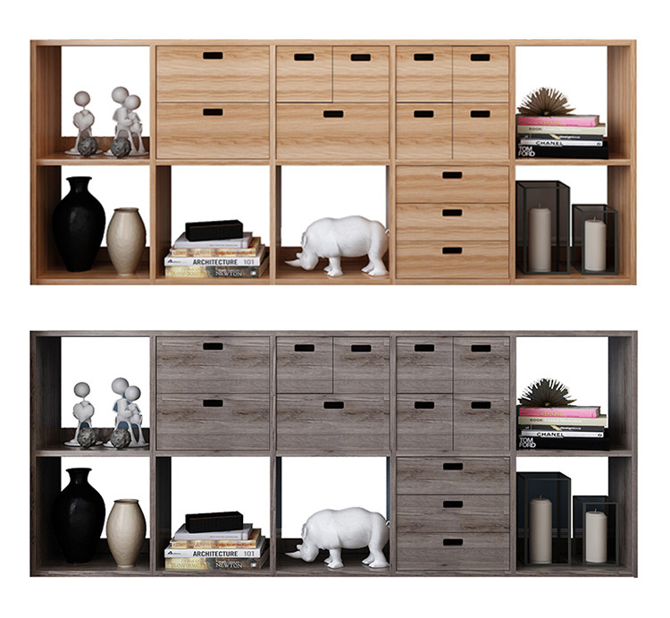 Japanese-style free combination bookshelf floor-to-ceiling children's living room simple storage solid wood lattice storage bedroom low bookcase
