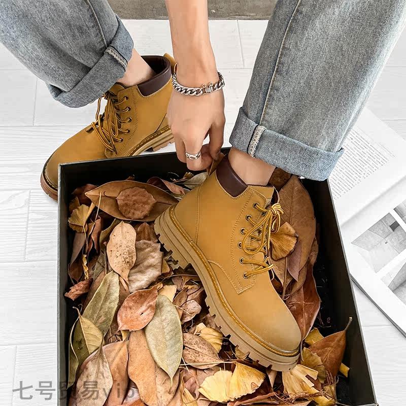 Men Martin Boots Leather 2022 British wind yellow boots high gang couple boots working boots in desert boots