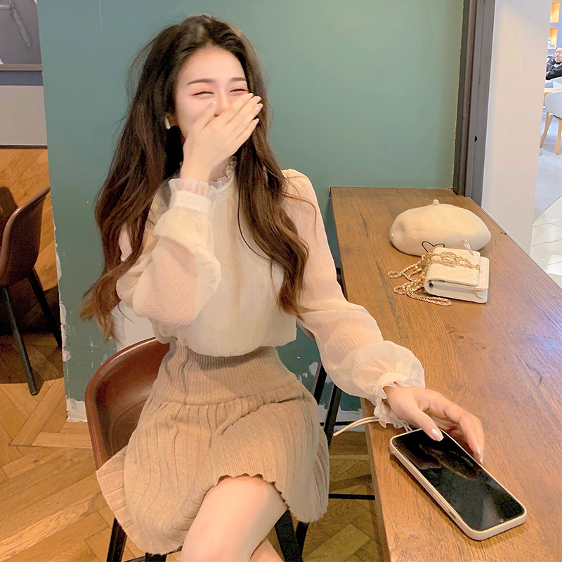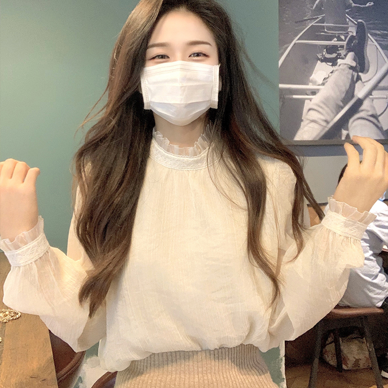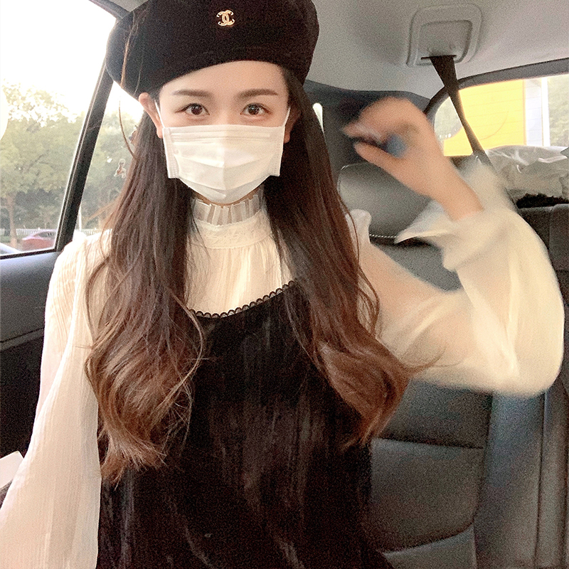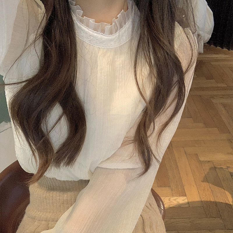 Face-style retro design sensation neckline with snow-spinning shirt female spring and autumn web yarn Don't give a little blouses to the undershirt-Taobao
