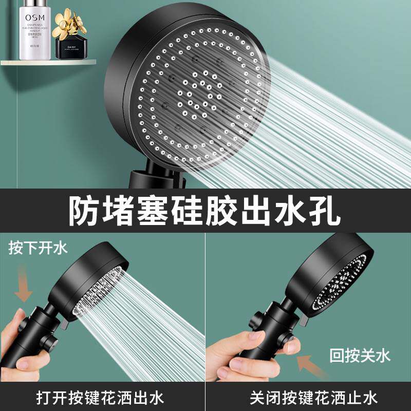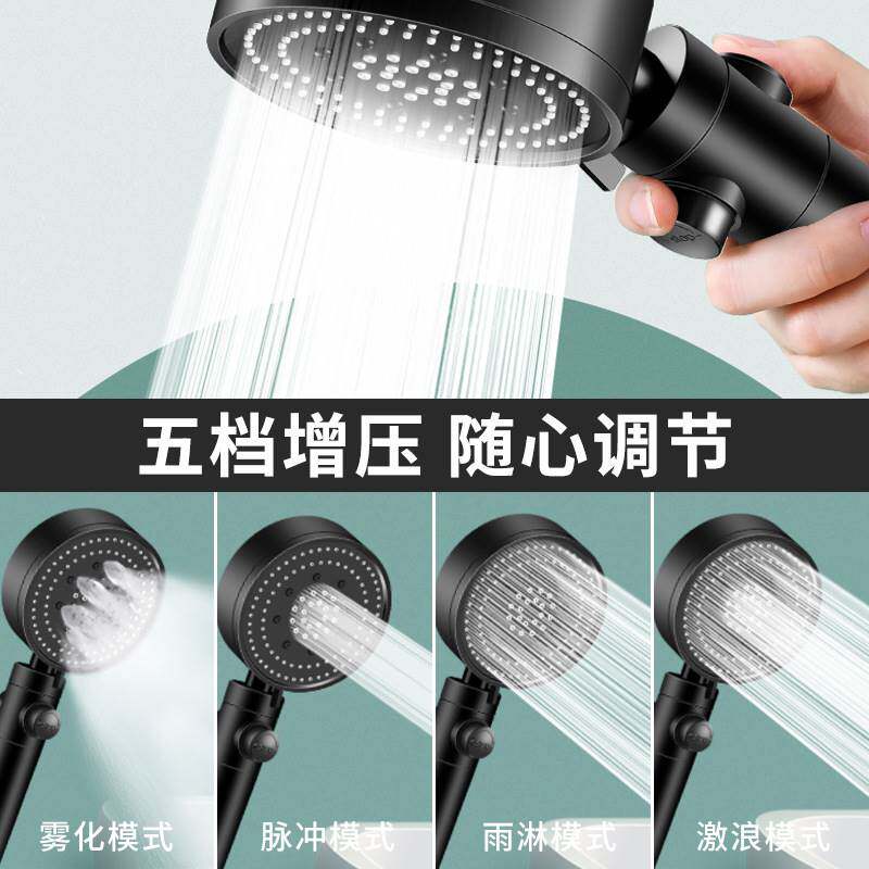 Supercharged atomized spa shower super magic shower shower head Yuba bath one-key water stop Black Samurai Canaan Sunshine