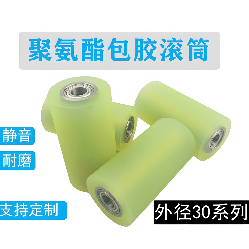 Spot polyurethane coated rubber roller double bearing abrasion resistant rubber unpowered roller silicon rubber wheel conveyor belt PU rubber roller-Taobao