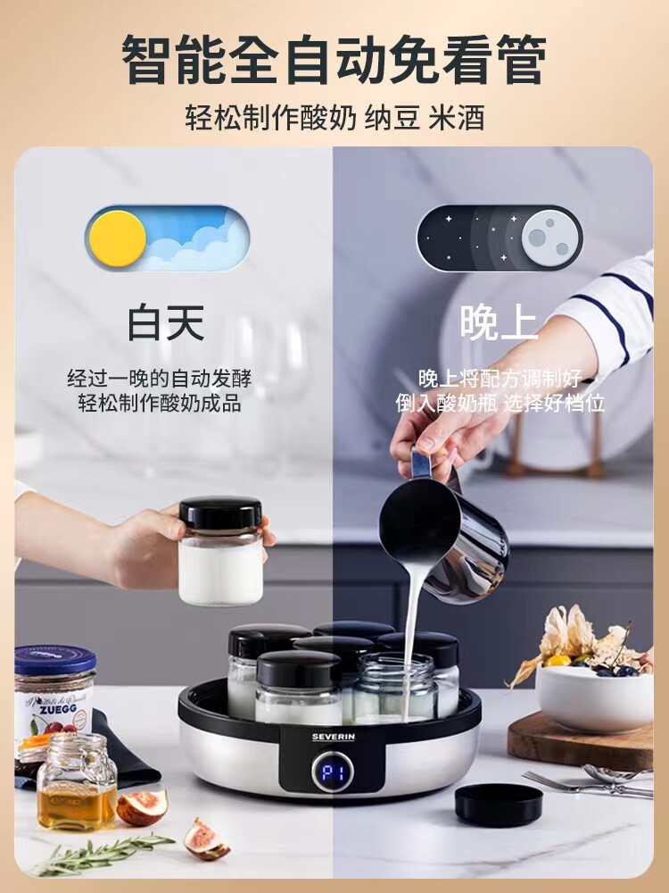 German Severin Homemade Yogurt Machine Home Fully Automatic Smart Small Glass Sub-Cup Natto Rice Wine Hair-Taobao