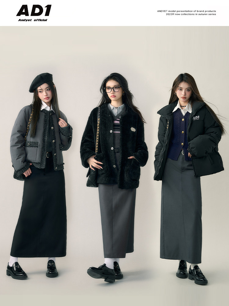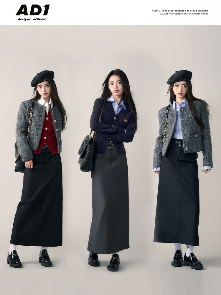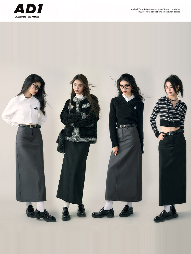 ANDYET AD1 22AW high-quality black suit skirt women's autumn and winter gray loose A-line skirt skirt