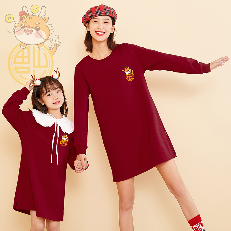 Chinese New Year Family clothes a family of three autumn and winter this year Long New Year Long New Year's family 2024 Baiyenmen 2023 Wei coat red-Taobao