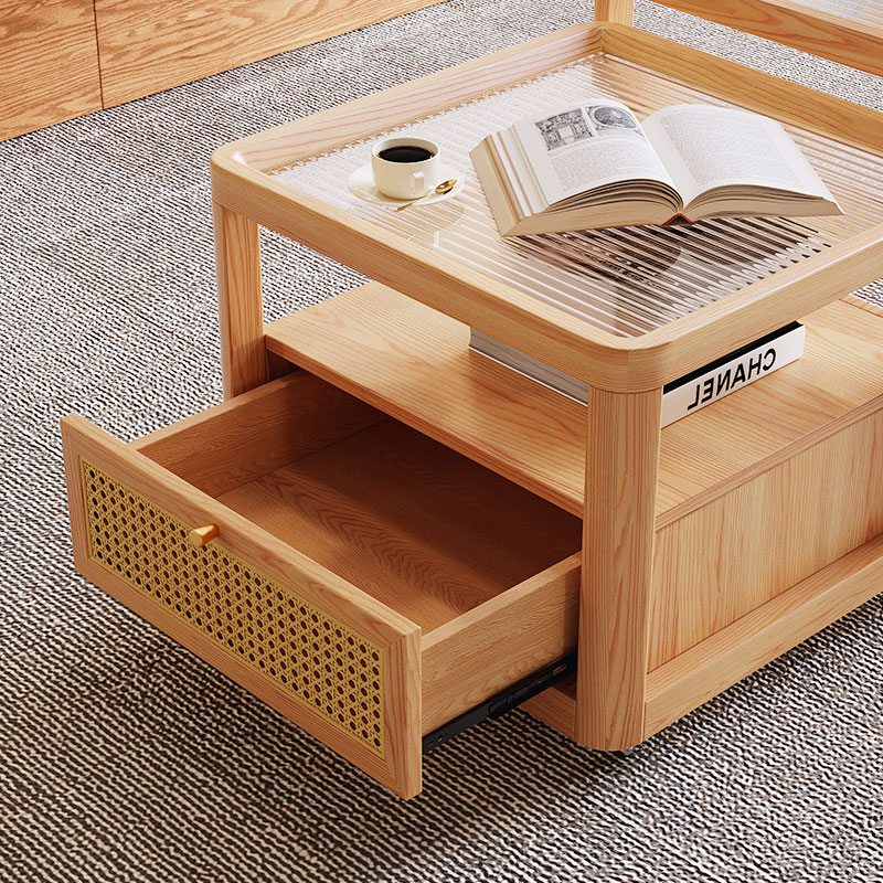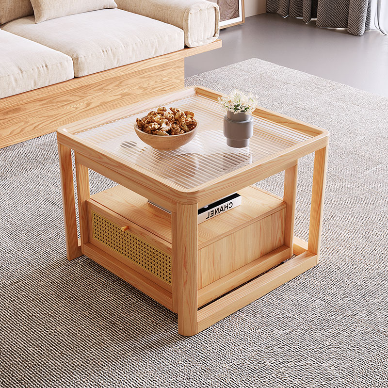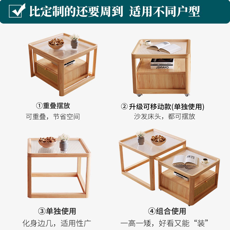 Nordic log color solid wood small apartment living room square combination coffee table simple removable storage coffee table combination