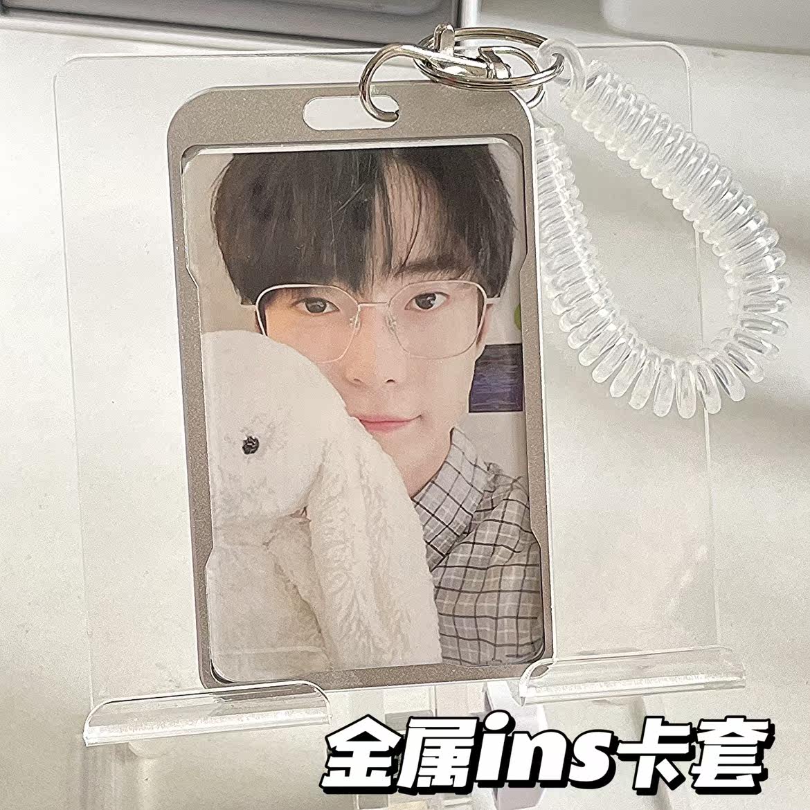 Metal silver vertical card holder transparent key chain metal silver horizontal card holder transparent key chain attention collection order note to send a small card