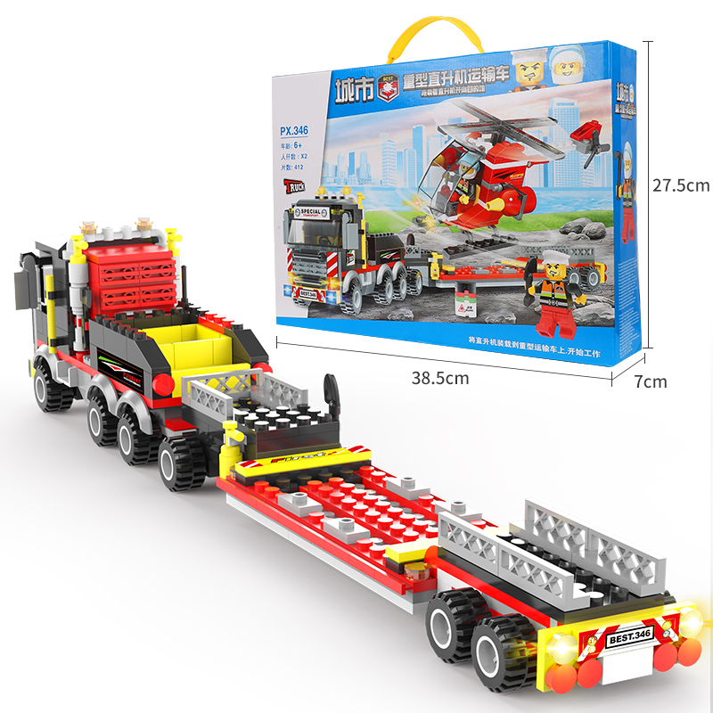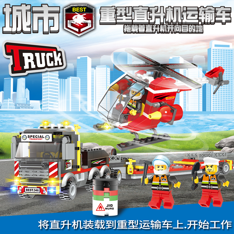 Helicopter building blocks Heavy truck transporter aircraft City container children Lego assembled toy boy gifts-Taobao