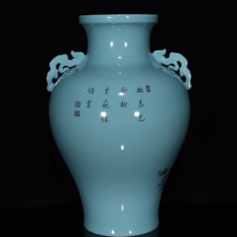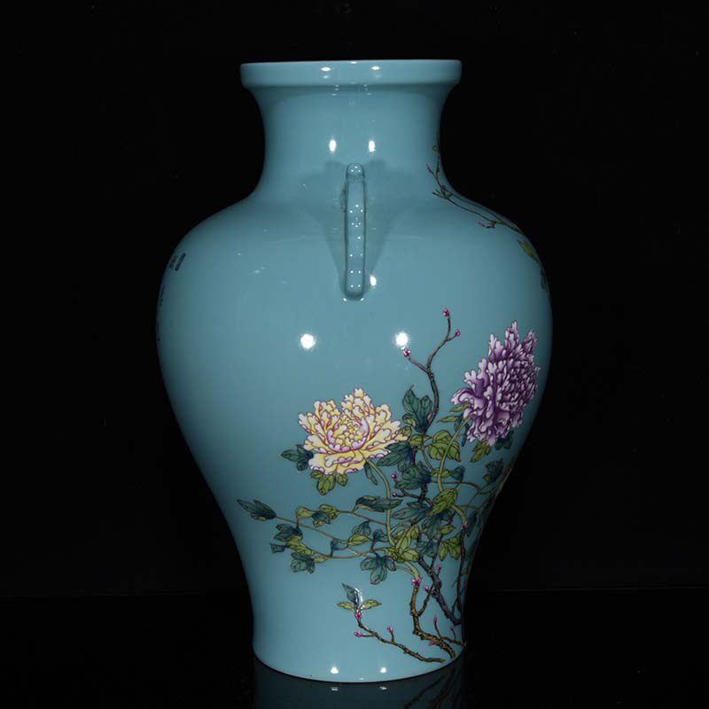 CQ2657 Qing Dynasty Yongzheng green field pastel flower pattern amphora