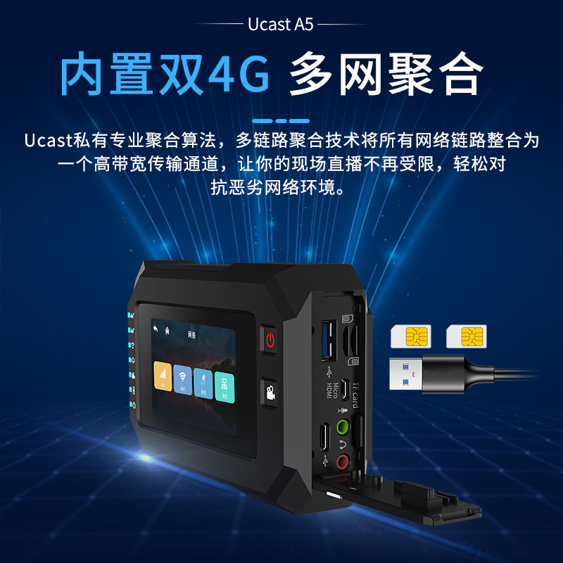 Ucast A5 4K Multi-Network Aggregation Live Camera 4G Multi-Card Aggregation Mobile Live All-in-one Sports Live-Taobao