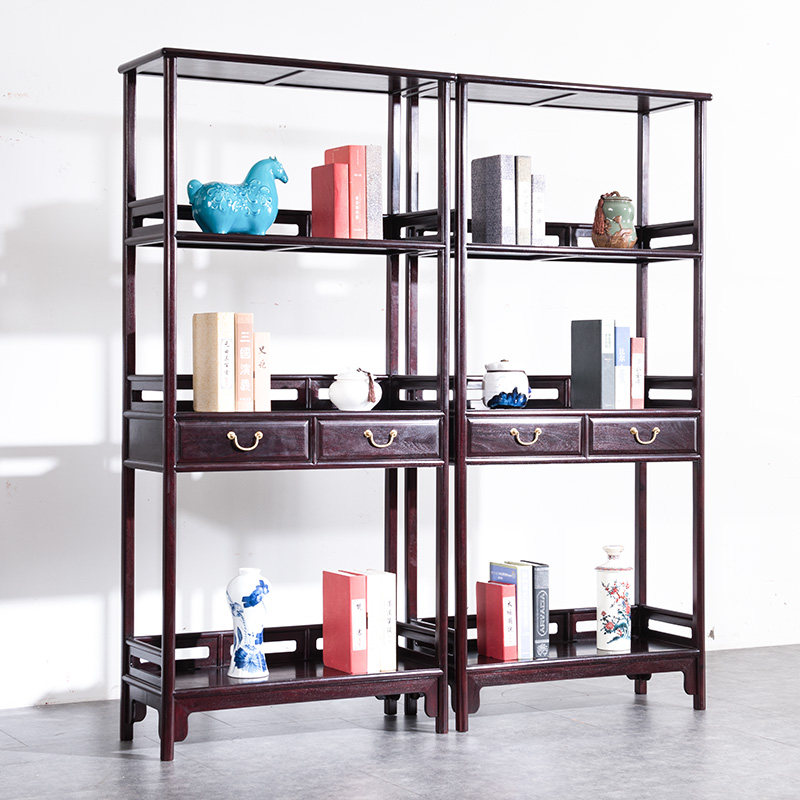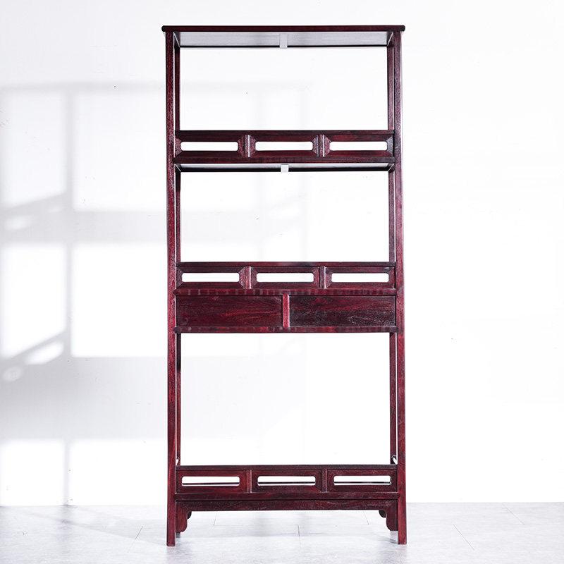 Qinfu mahogany furniture Zambia blood sandalwood bookshelf solid wood Chinese style living room floor rack bookcase display rack