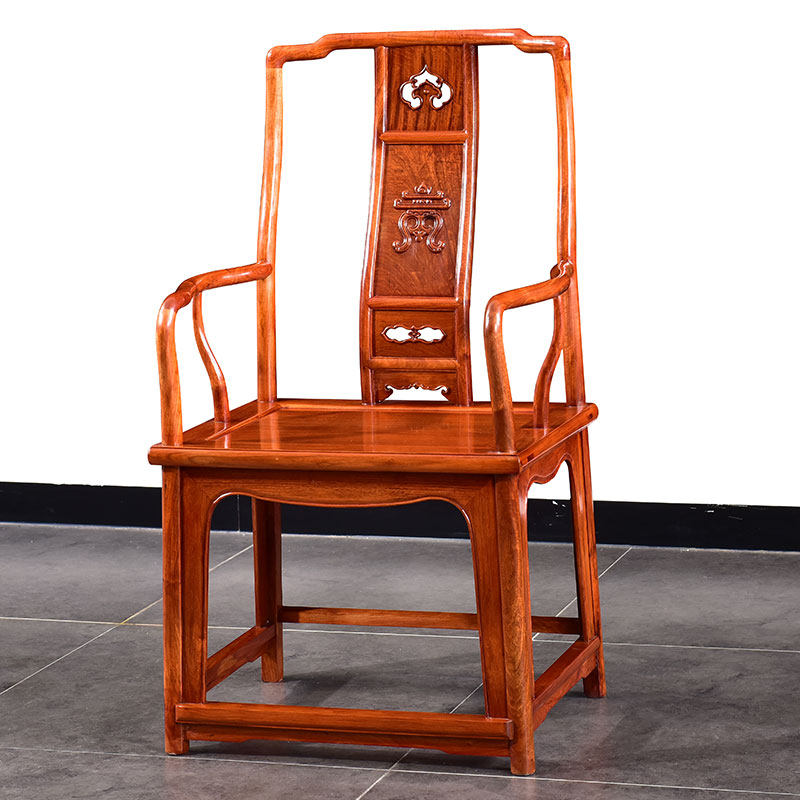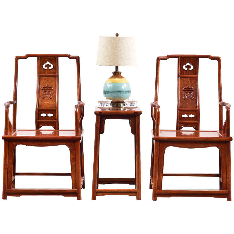 Qinfu mahogany furniture Burmese pear official hat chair three-piece set master chair solid wood tea chair home backrest Taishi chair