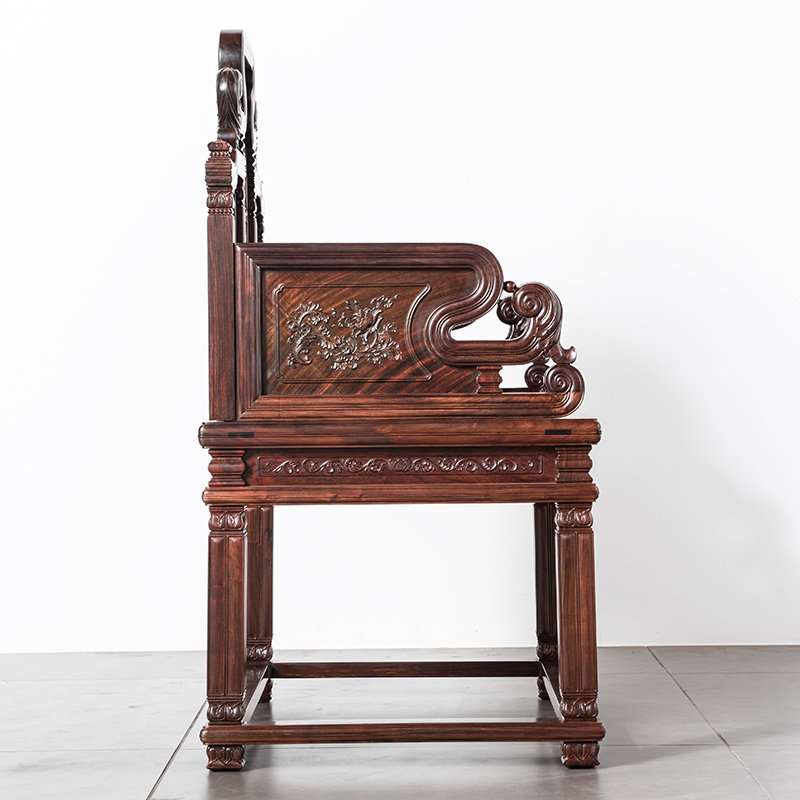 Mahogany furniture big red sour branch lotus throne three-piece set Cochin rosewood solid wood Taishi chair study tea room chair