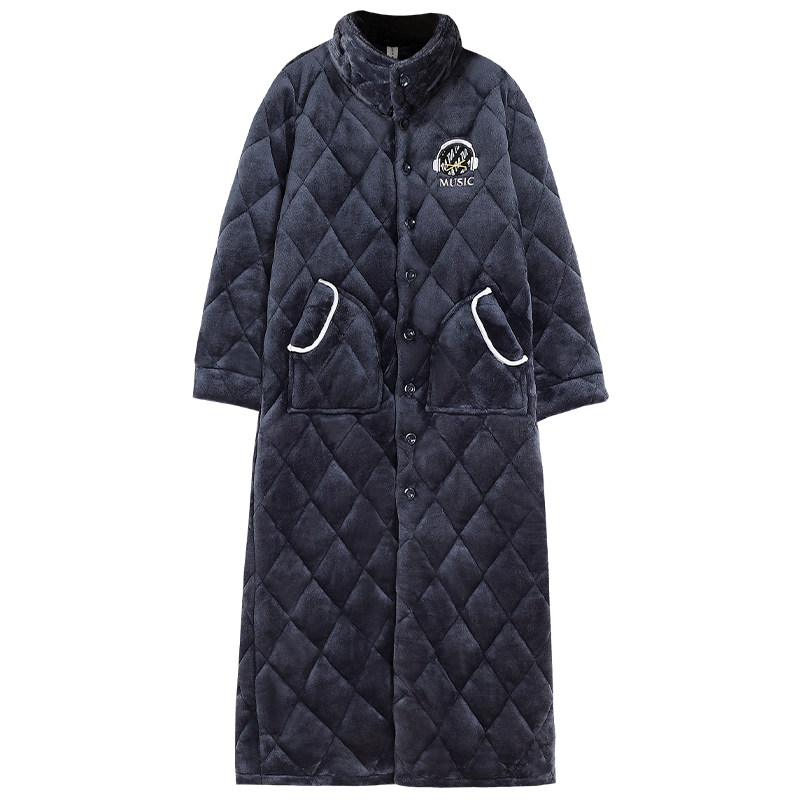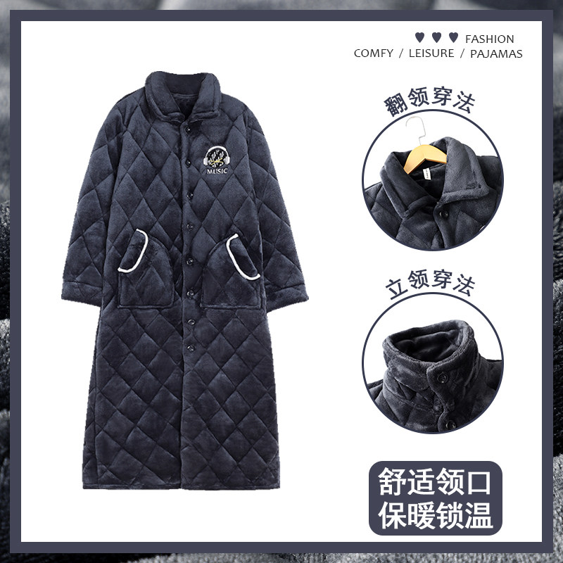 Yu one trillion Lin sleepwear winter style man sleepwear coral suede thickened 3-layer clip cotton ultra-thick bathrobe gaffe to increase the morning gown-Taobao