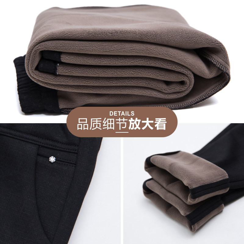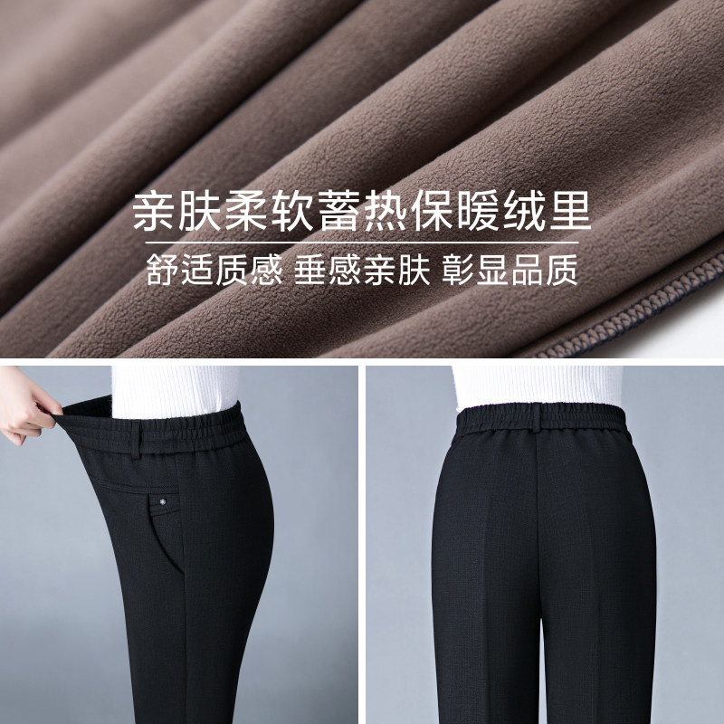 Middle Aged Girl Pants Autumn Winter Mom Plus Suede Pants Outwear Middle Aged Autumn Winter Warm Pants Black Straight Drum Long Pants-Taobao
