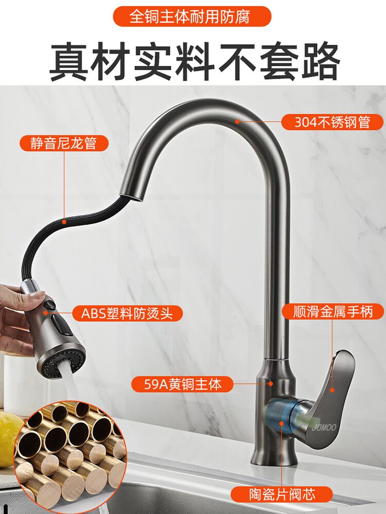 Full copper home kitchen pull-out tap hot and cold washing basin dishwashing basin universal splash-proof water laundry pool sink-Taobao