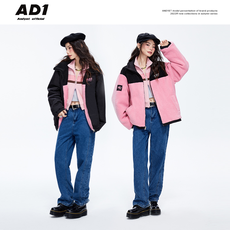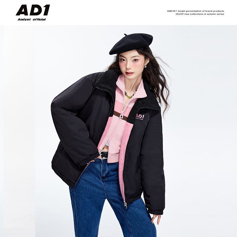 ANDYET AD1 22AW Two-sided wearing lamb wool splicing jacket women's winter commuting style loose thick padded jacket