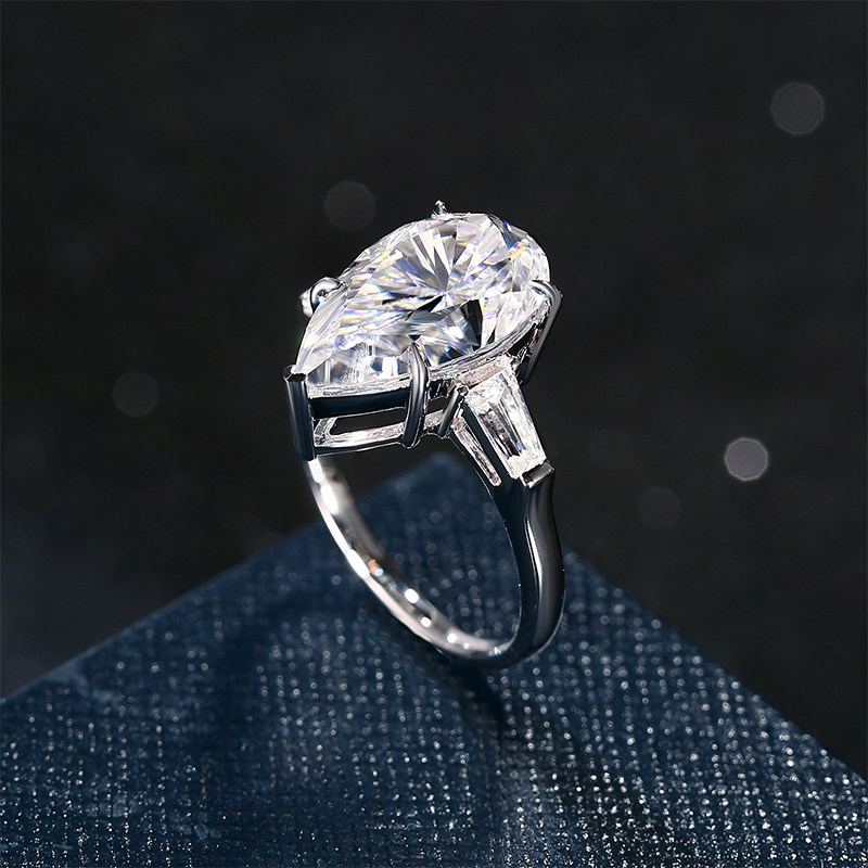 Pear-shaped Drop Drill 18K Platinum Mosanstone Ring Drill Ring 2 3 4 5 carats ordered for PT950 Platinum color gold-Taobao
