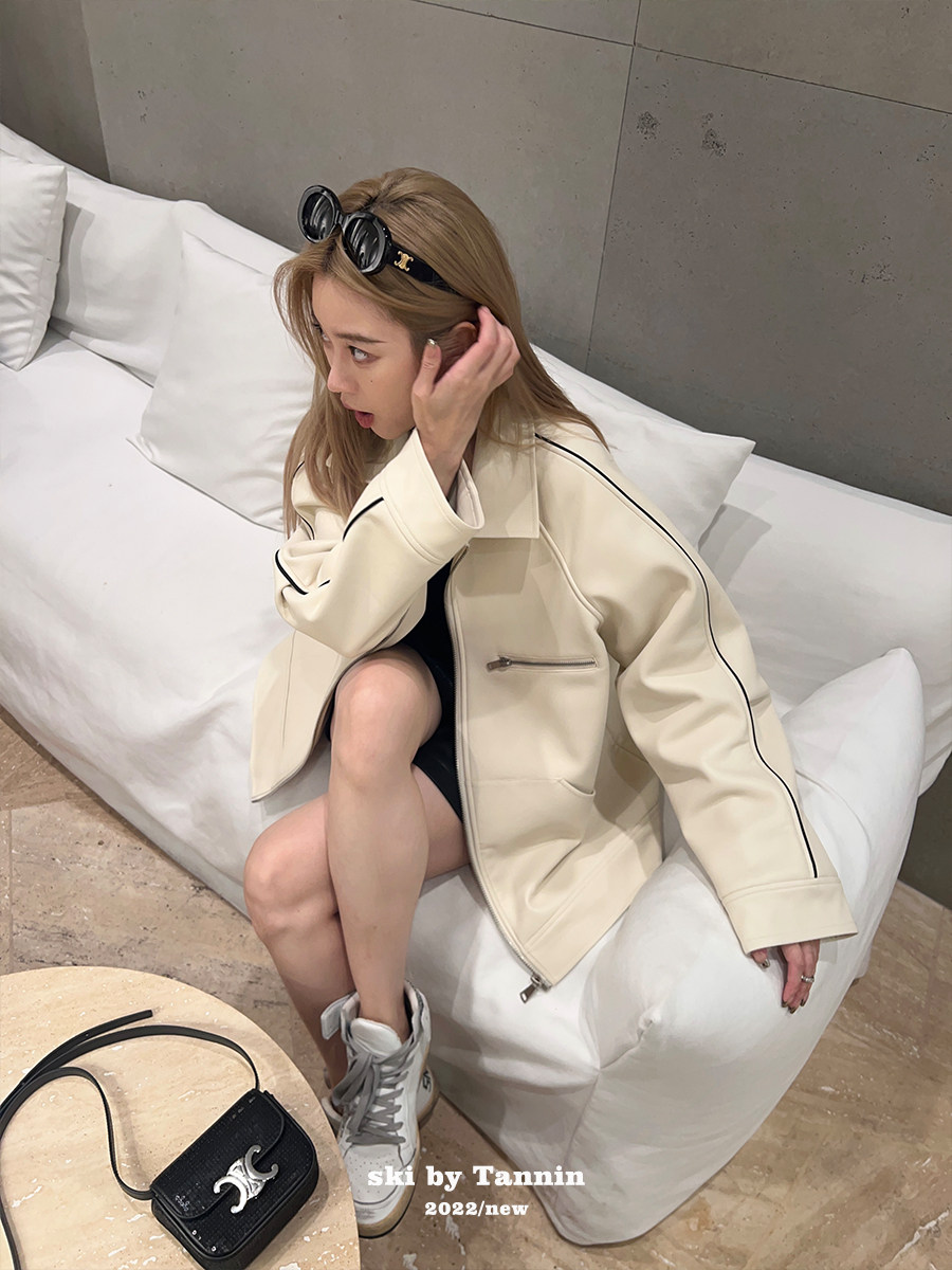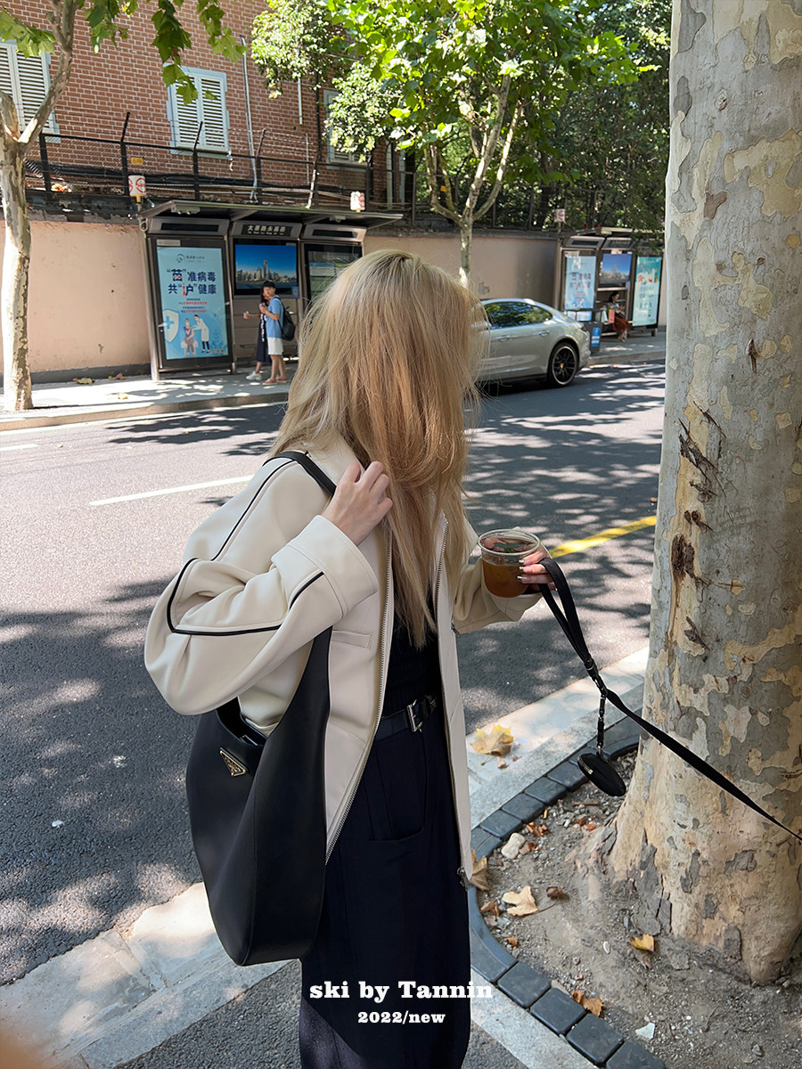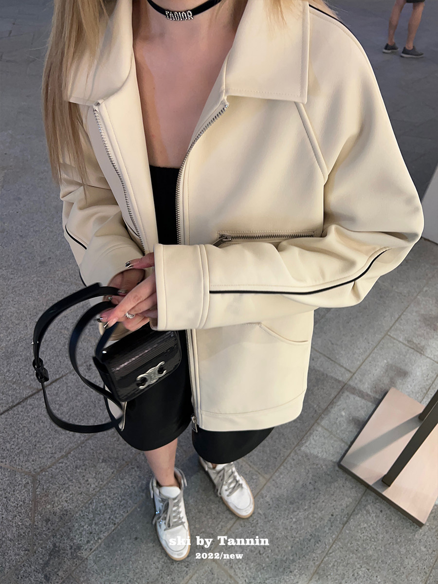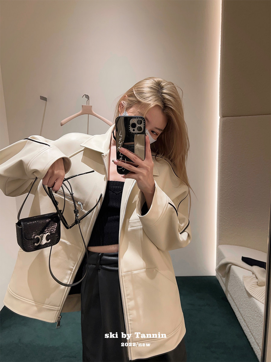 skibyTannin loose plus velvet thick leather jacket women's autumn and winter retro functional leather jacket bf baseball uniform