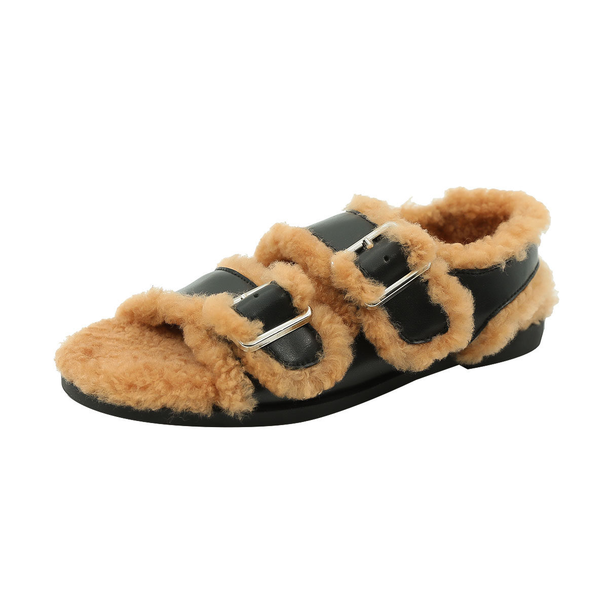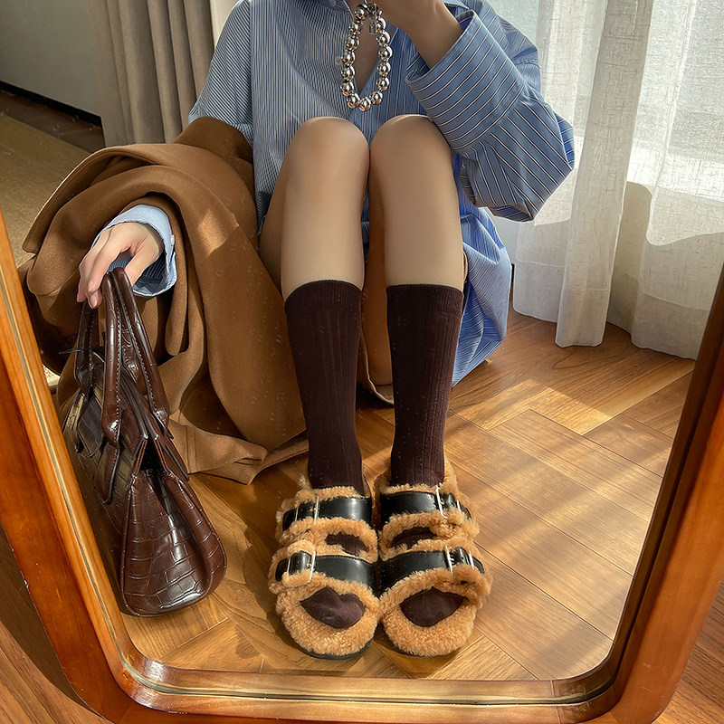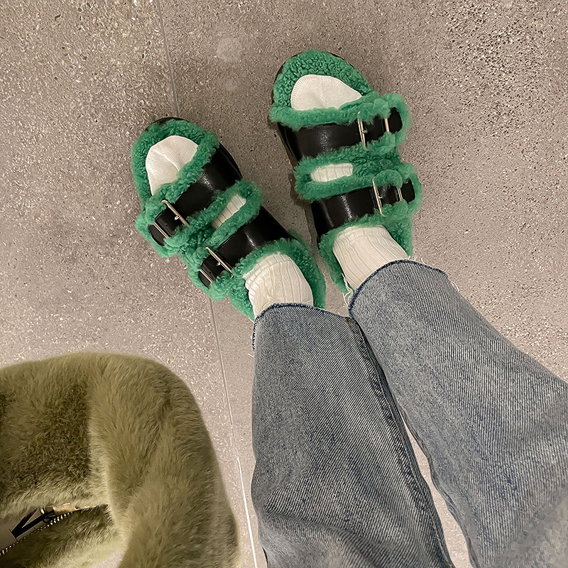 Miss Morning can bend soft click ~ one word button to keep the flat coat coat sandals snowshoes