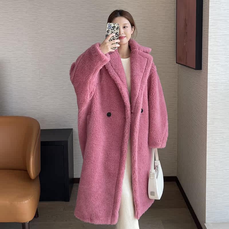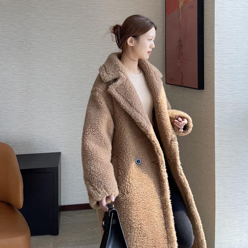 2022 winter new M family teddy bear coat women's fur lamb hair camel hair one teddy mid-length coat