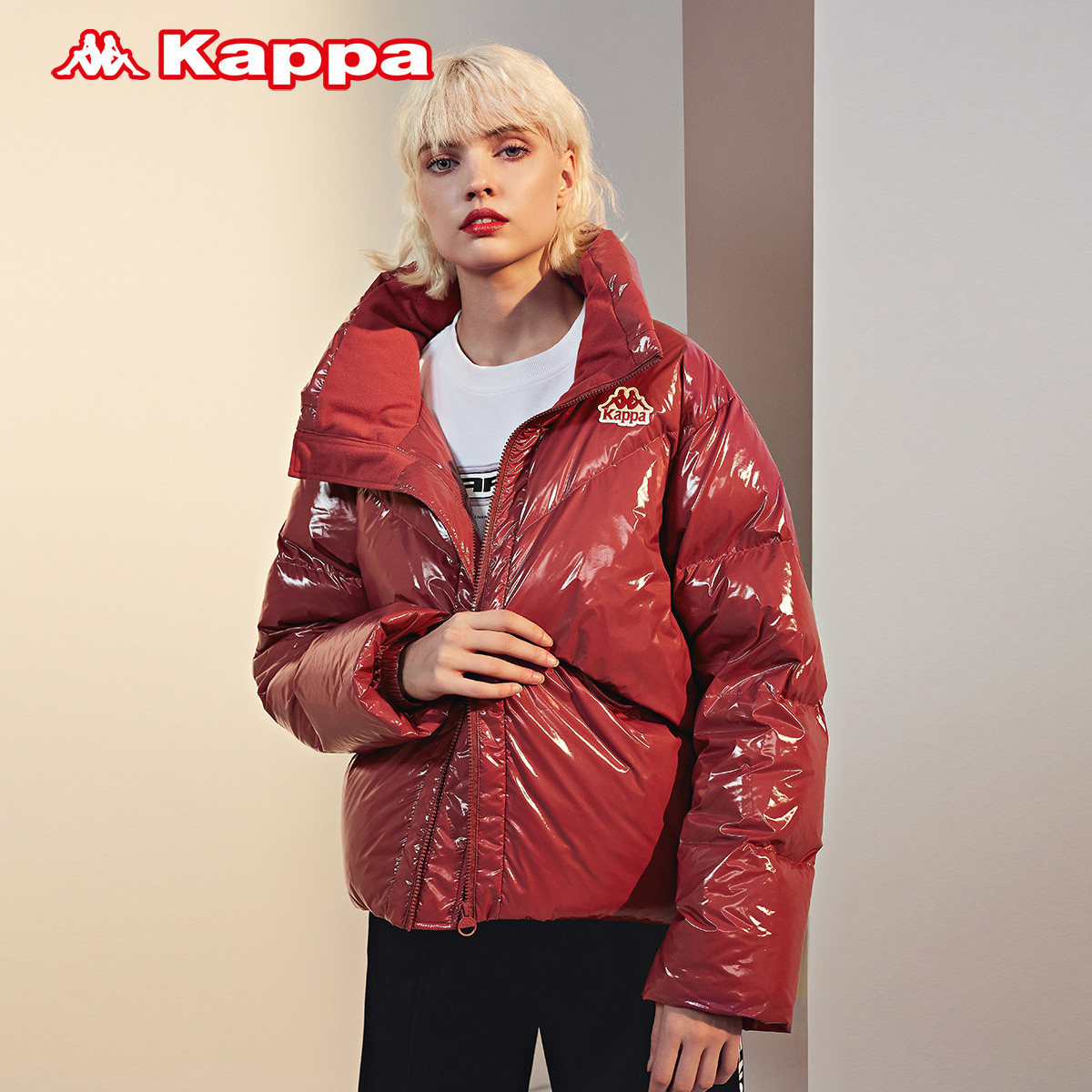 Kappa Capa brightly faced down jacket winter female high-level collar suit outdoor sports coat anti-cold suit