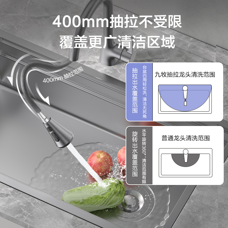 Nine-pastoral bathroom pull-out home kitchen tap universal swivel anti-splash telescopic washbasin hot and cold 33167-Taobao