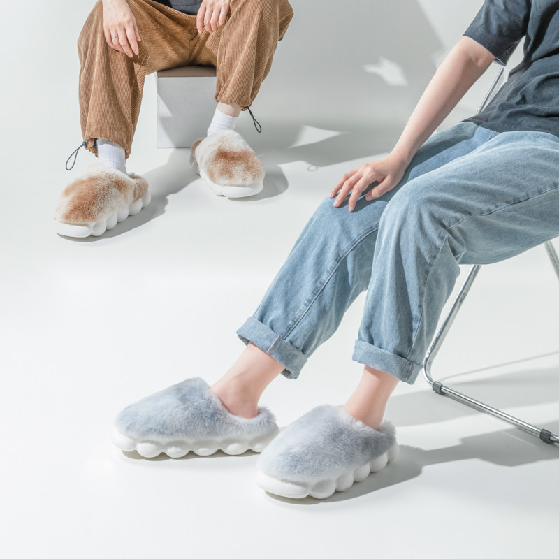 Cotton slippers lady winter cat feels high luxury solid bag head plus heating indoor home anti-slip hair tow